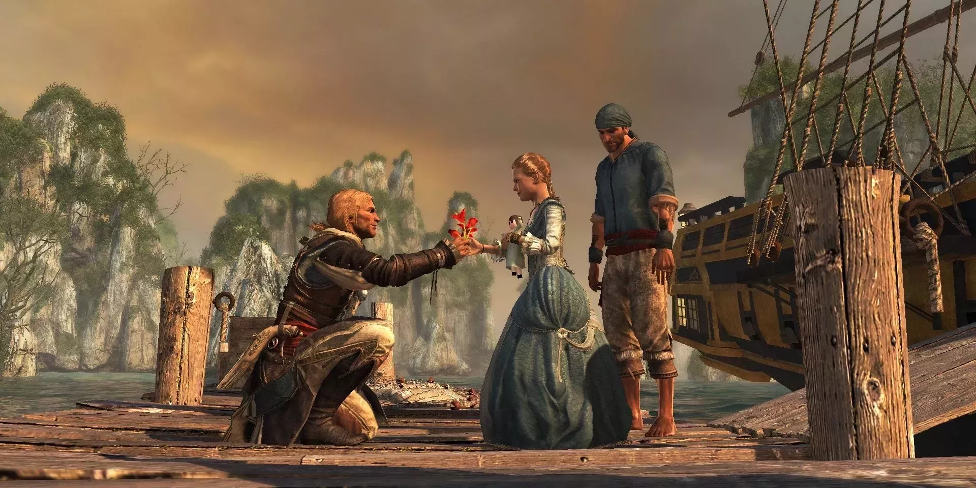 A lo largo de Black Flag, Edward emprende un largo viaje, tanto en sentido literal como figurado. El juego termina con Edward preparándose para partir y reunirse con su hija, tras la noticia de la muerte de su esposa. El momento coincide con una balada de recuerdo. Mientras Anne Bonny canta, otros piratas escuchan atentamente y Edward ve a todos los que murieron en el camino sentados a una mesa y alegrándose. Black Flag tiene otro final en el que Edward, ya mayor, vuelve a casa con sus hijos, pero esta es la verdadera despedida que los jugadores querrán recordar.