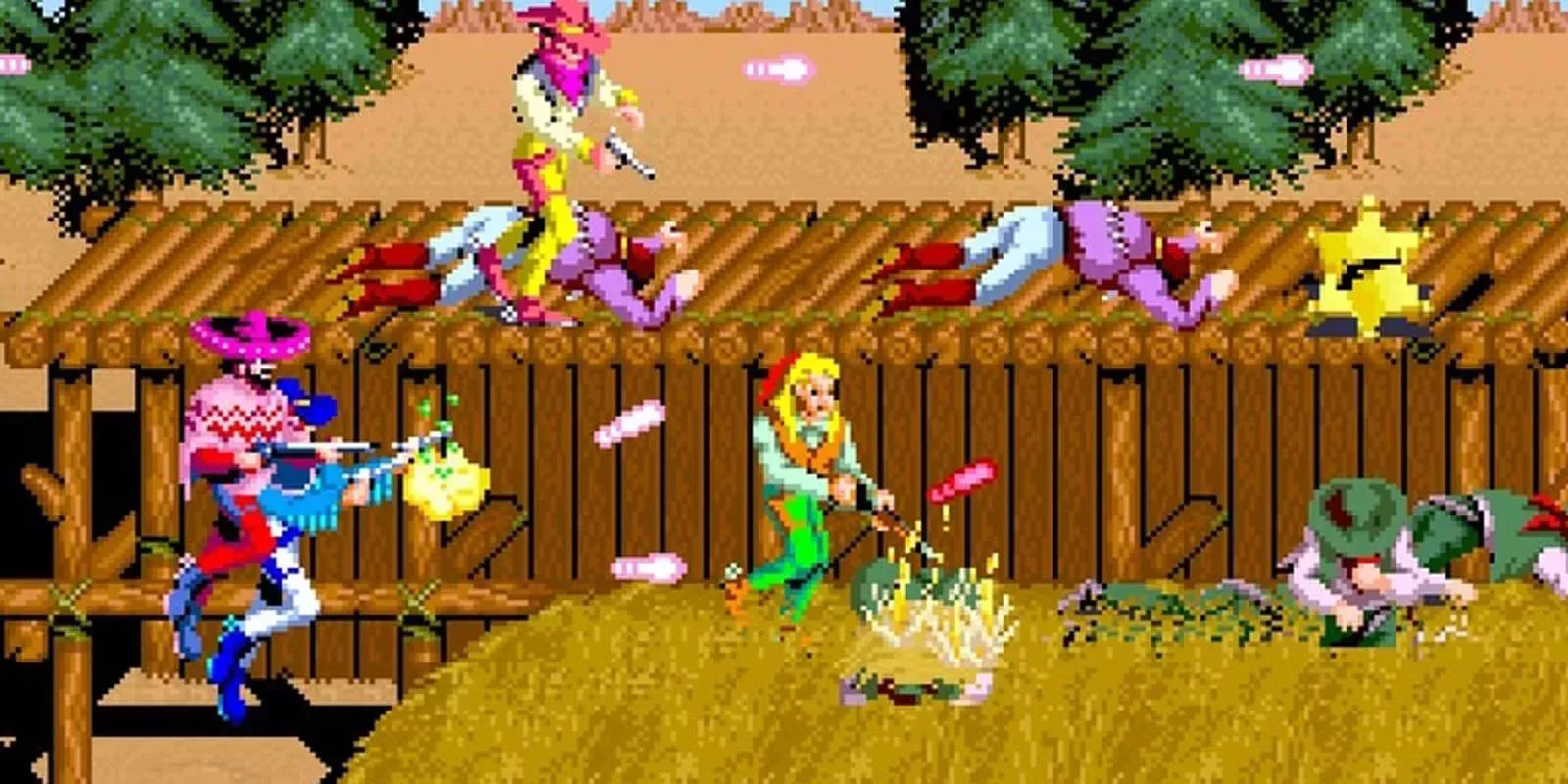 Lanzado inicialmente como juego arcade sólo en 1991, Sunset Riders llevó el viejo Oeste a los salones recreativos. Los jugadores pueden elegir uno de los cuatro cazarrecompensas: Steve, que usa revólveres; Cormano, que lleva un pancho y usa una escopeta; Bob, que usa un rifle; y Billy, que usa un revólver. El juego permite uno, dos o cuatro jugadores, y en el modo de cuatro jugadores, los cazarrecompensas se asignan a mandos específicos (de lo contrario, los jugadores pueden elegir qué cazarrecompensas seleccionar.