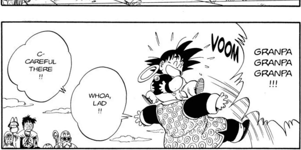 El Dragon Ball original es más desenfadado que sus sucesores, más llenos de acción, pero la serie sigue encontrando oportunidades para giros oscuros y rupturas emocionales. Goku es huérfano cuando comienza Dragon Ball y su abuelo sustituto, Gohan, falleció trágicamente durante una de las transformaciones en Gran Simio de Goku.