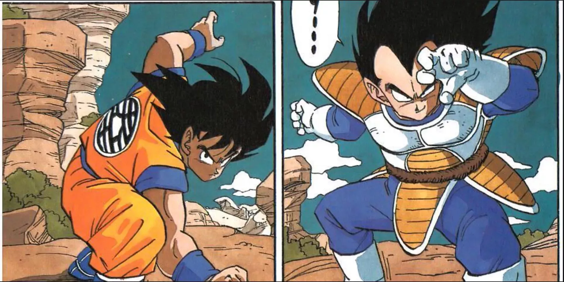La primera pelea de Goku y Vegeta sigue siendo un momento legendario de la franquicia. Los paneles del manga que dan comienzo a la pelea muestran a la perfección la tensión que está a punto de estallar. Su enfrentamiento subraya simbólicamente las diferencias entre los dos personajes.