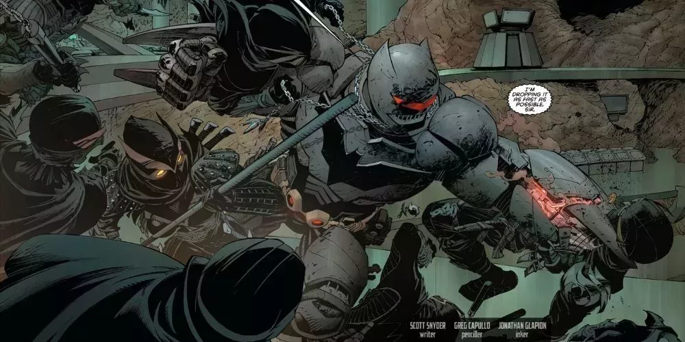 11 Armadura Thrasher de BatmanPrimera aparición: Batman #8 (junio de 2012) por Scott Snyder, Greg Capullo, Jonathan Glapion, FCO Plascencia, Richard Starkings.