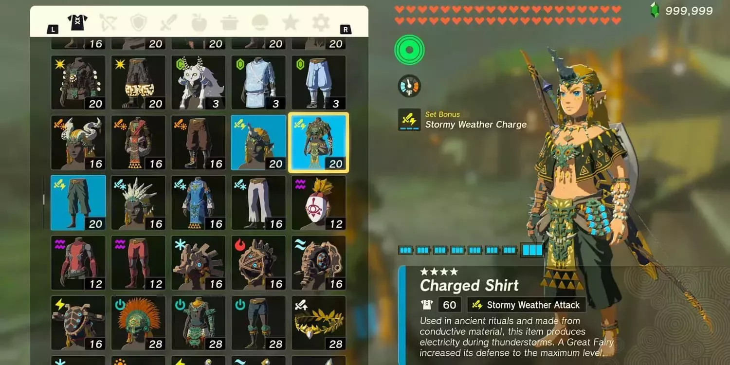 22 Aprovecha el poder de la furia de la naturaleza con el Charged SetLink puede capear las tormentas de Hyrule con esta armadura