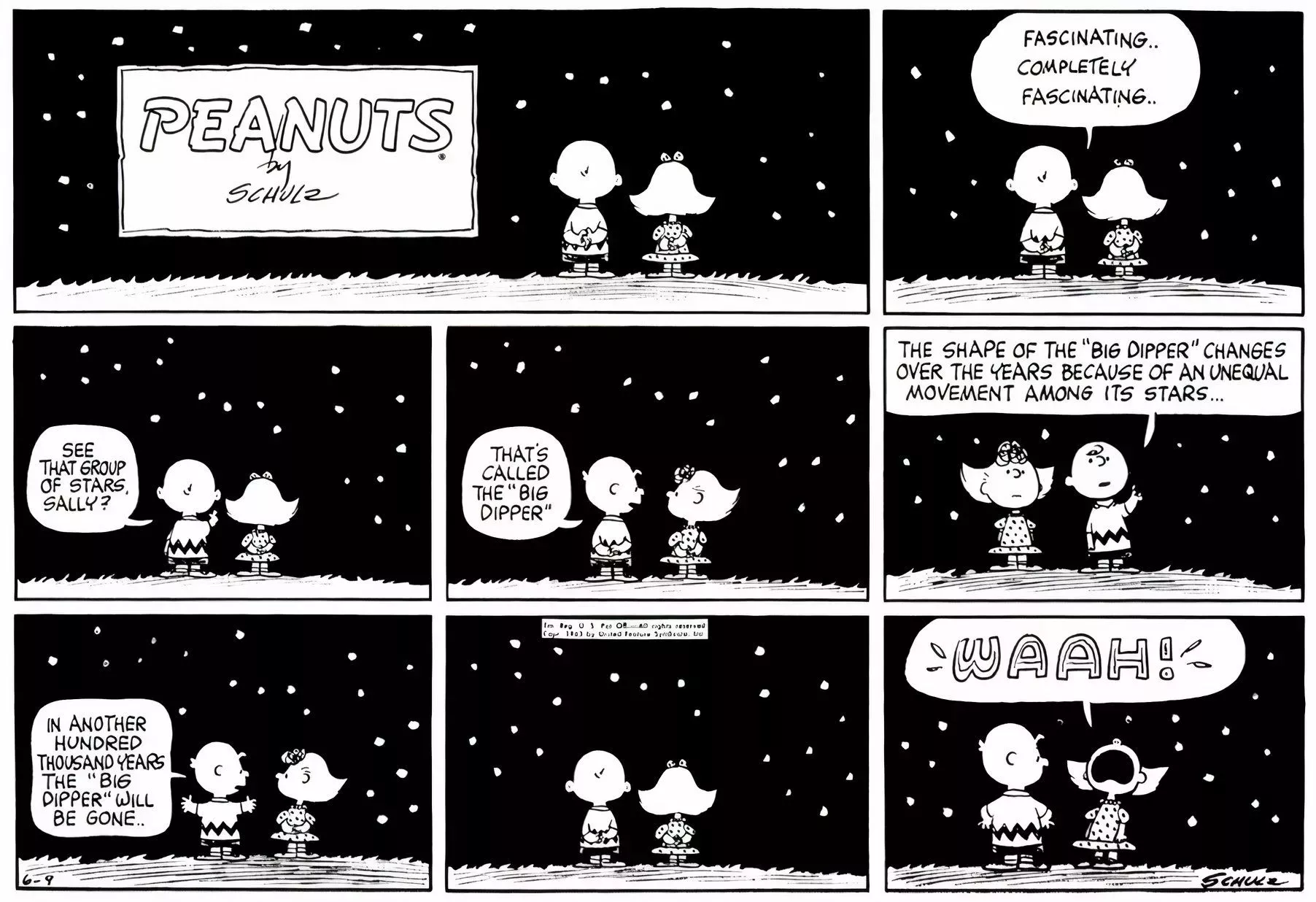 Pensar en la próxima destrucción de las constelaciones y en el movimiento de las estrellas está más allá del alcance de la mayoría de los niños, como demostró Sally Brown cuando rompió a llorar después de que Charlie Brown se lo explicara. Sin embargo, su fácil descripción y el asombro que muestra ante ello demuestran que puede que entienda la filosofía incluso mejor que Sally Brown.