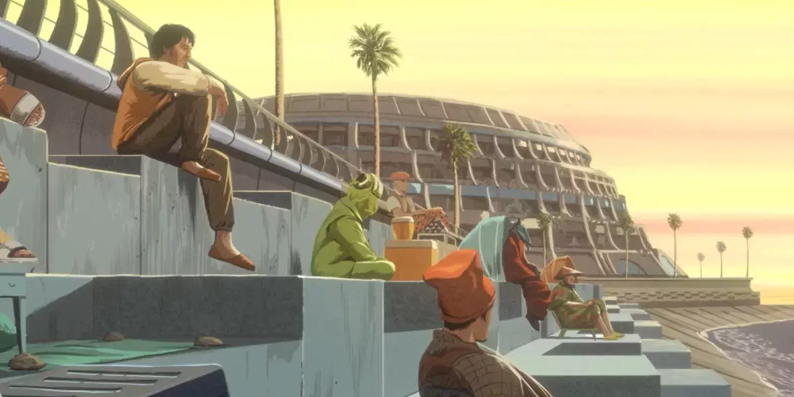 En "Cassian Andor en la playa de Niamos | Star Wars Lofi" se muestra a Cassian relajándose en la playa con otros turistas, disfrutando de un momento tranquilo. Este vídeo contrasta con la totalidad de la serie Andor, que ahonda en los horribles efectos del Imperio en toda la galaxia y en el efecto del Imperio en la gente corriente.