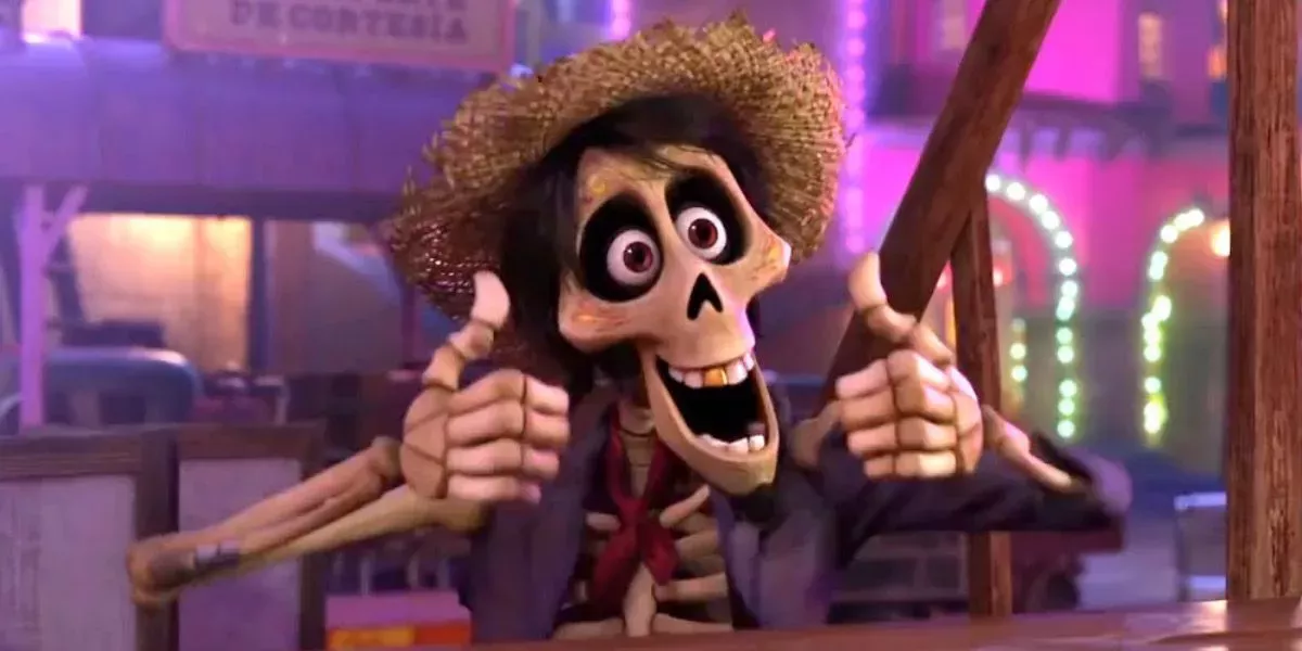 El bisabuelo de Miguel, Héctor, no es más que un esqueleto en Coco. El hueso de la risa de Héctor es mucho más activo en la tierra de los muertos. A pesar del aplastante peso del rechazo de Imelda, Héctor consigue levantar el ánimo con la esperanza de que su mujer pueda perdonarle algún día.
