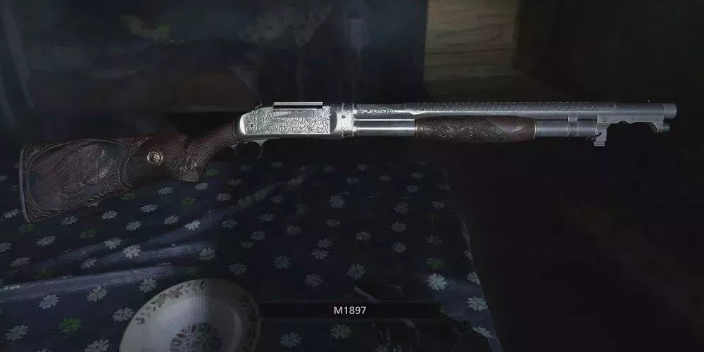 La escopeta M1897 puede matar enemigos de 1 a 2 impactos. Su amplio alcance le permite derribar a varios enemigos a la vez. Durante las primeras fases de Resident Evil Village, esta escopeta es básicamente la mejor amiga de cualquier jugador. Dicho esto, hay varias opciones mejores con las que Ethan acabará encontrándose.