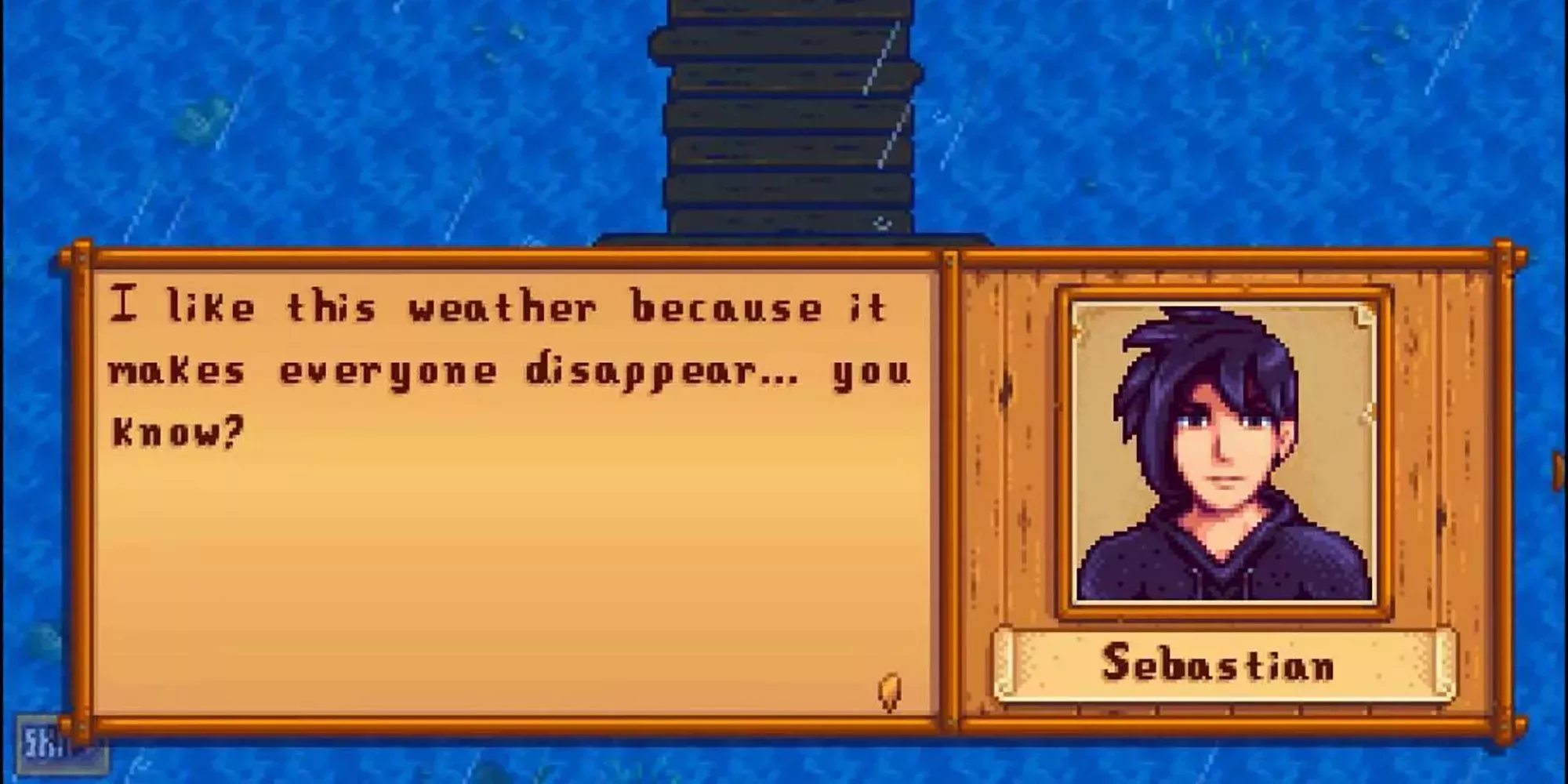 Sebastian es uno de los romances más difíciles de empezar en Stardew Valley. Tiene un horario extraño, pasa la mayor parte del día trabajando en su ordenador y es más fácil encontrarlo fuera por la noche. Al principio es retraído y reservado, sólo sale de su caparazón cuando está con sus amigos Sam y Abigail, y muchos jugadores podrían considerarlo un personaje antipático. Sin embargo, bajo su exterior distante, Sebastian es muy profundo y, a medida que su personaje empieza a desarrollarse, comparte algunas de sus pasiones más profundas con el personaje del jugador.