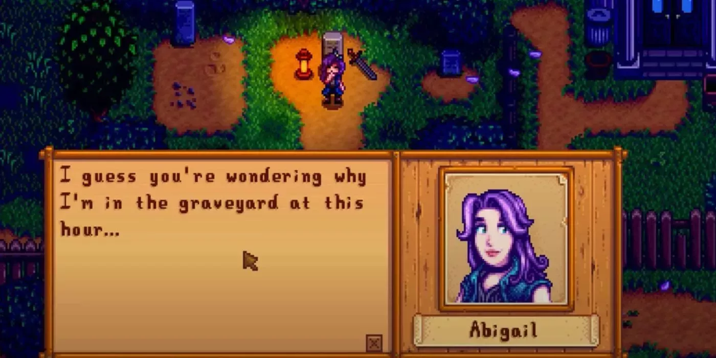 Abigail es uno de los intereses amorosos más populares de Stardew Valley. Su diseño de inspiración gótica la convierte en uno de los solteros más característicos y llamativos del juego. Además, la historia romántica de Abigail llega a lugares donde nadie más lo hace, incluyendo una sesión de videojuego y una aventura en la mina.
