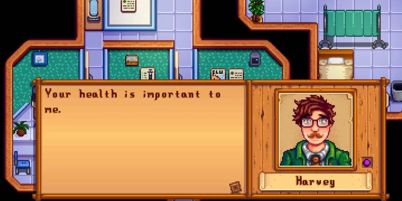 Harvey es también uno de los maridos más viejos de Stardew Valley, como el médico del pueblo que es significativamente mayor que la mayoría de los otros cónyuges adultos jóvenes. Esta diferencia de edad puede resultar desagradable para algunos jugadores y atractiva para otros. Del mismo modo, su diseño con bigote puede convencer o alejar a algunos jugadores de Stardew Valley.