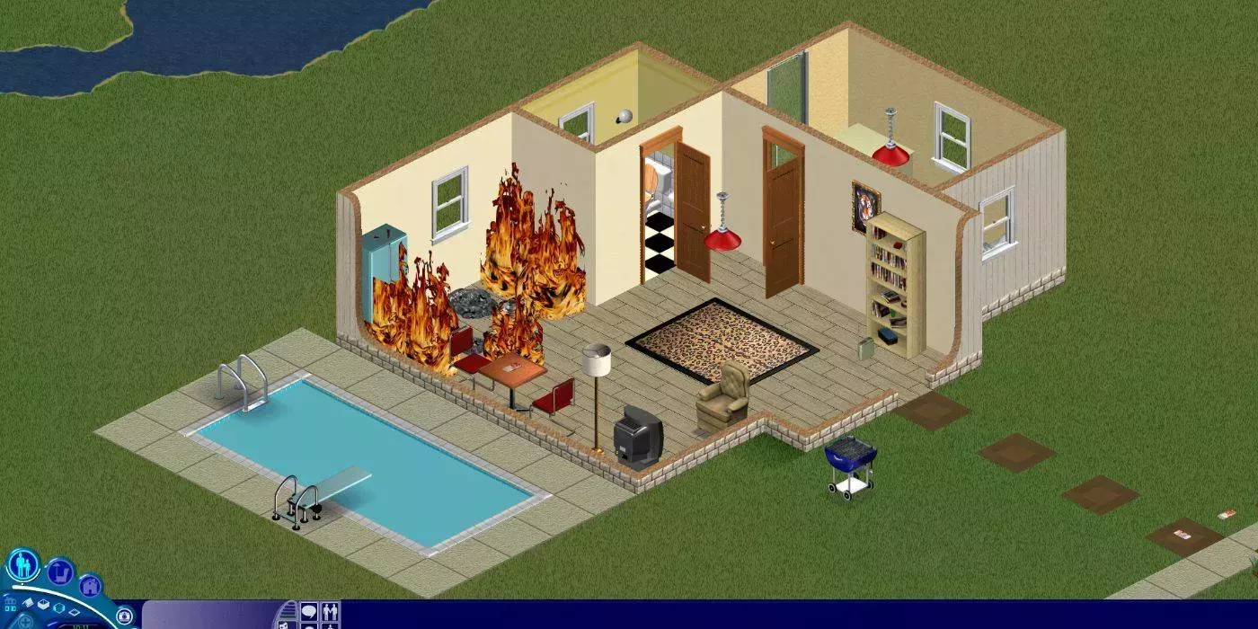 Basado en parte en la experiencia del desarrollador Will Wright, que perdió su casa en una tormenta de fuego, Los Sims no se parecÃa a ningún otro juego de simulación cuando salió al mercado. Tomaba SimCity y lo reducÃa literalmente a un nivel pedestre. Marcó la pauta para los futuros juegos de la serie, con la posibilidad de comprar casas prefabricadas a las que trasladar a los Sims o comprar un terreno para construir casas elaboradas.
