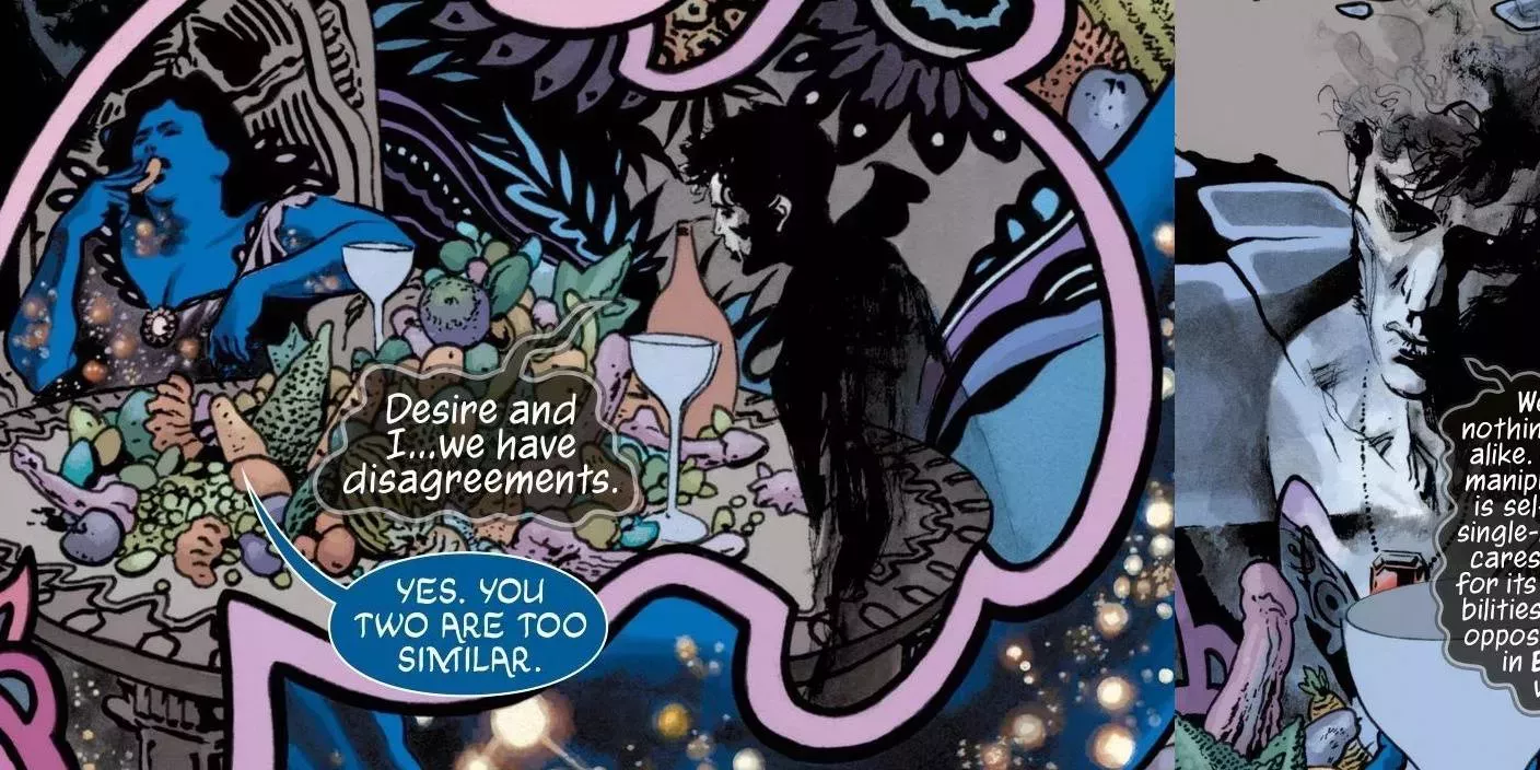 Deseo, hermano gemelo de Desesperación, es uno de los principales antagonistas de The Sandman. Su género es completamente mutable, lo que le permite cambiar de forma según lo requiera la situación. Desire es también uno de los miembros más crueles de la familia, a menudo burlándose o interfiriendo en los deberes de sus hermanos.
