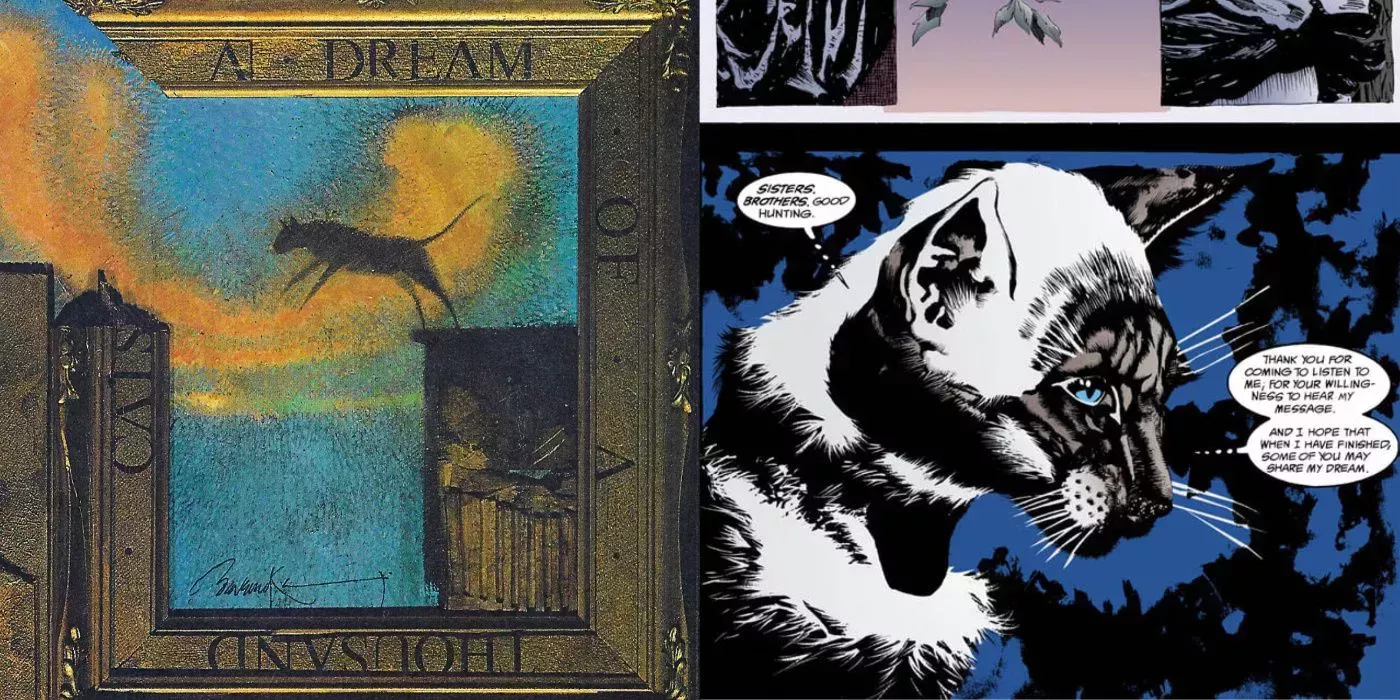 A Dream of a Thousand Cats" de The Sandman es más inquietante de lo que los lectores creen a primera vista, lo que lo convierte en material de lectura perfecto para Halloween.El mito de Sandman dio una dimensión adicional a la tragedia de Orfeo y Eurídice. Orfeo era hijo de Morfeo y Calíope y, tras la muerte de Eurídice el día de su boda, acudió a sus tíos en busca de ayuda. La muerte le hizo inmortal y fue al Hades para recuperar a su amor. Orfeo cantó una canción que conmovió al señor del Inframundo e hizo llorar a las Parcas. Se le dio la oportunidad de recuperar a Eurídice, pero cuando miró detrás de él para ver si le seguía, rompió la única regla, y Eurídice regresó al Inframundo. Las Parcas, en un arrebato de ira que las hizo llorar, lo despedazaron, pero como no podía morir, su cabeza sobrevivió.