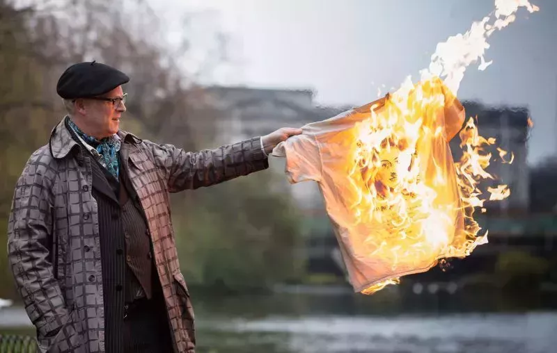 La protesta, que suscitó críticas en su momento, coincidió con el 40º aniversario del lanzamiento en el Reino Unido del tema de los Sex Pistols "Anarchy In The UK".