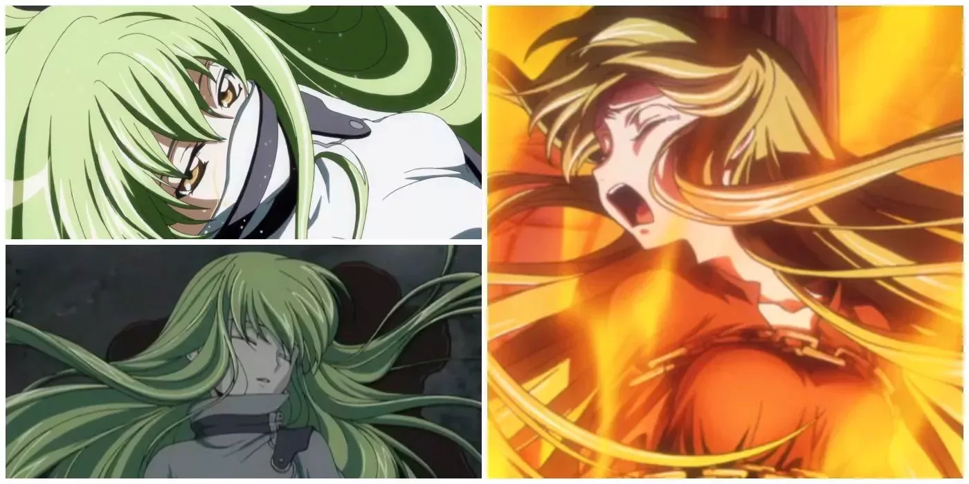 La bruja C.C. es el eje principal sobre el que gira el anime. Al dar a Lelouch Geass, ella desencadena la mayoría de los trágicos acontecimientos que se desarrollan. Su propósito es que él le quite la inmortalidad. Incluso cuando está al lado de Lelouch, está en contacto con su manipuladora madre. Pero todas sus acciones traicioneras son comprensibles: ha muerto de todas las formas posibles, ha sido objeto de experimentos por parte de Clovis y ha perdido más que nadie en la serie. A pesar de su desesperación por morir, C.C. rechaza a Charles y elige a Lelouch. Le ayuda hasta el final, ya que sus sentimientos por él se anteponen a su viejo sueño.