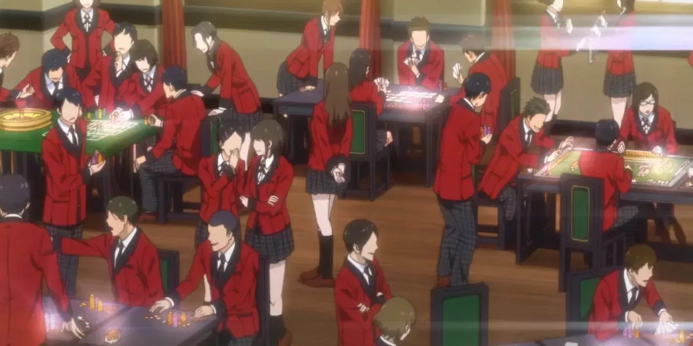 Todo el alumnado de Kakegurui está más interesado en el juego que en el aprendizaje. Es difÃcil que la Academia Privada Hyakkaou se llame a sà misma un lugar de aprendizaje cuando todo el lugar está gobernado por niños adictos al juego con más dinero que sentido común.