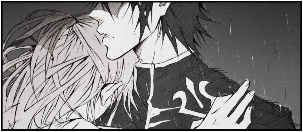 Shirley representa la inocencia y la vida normal que Lelouch ha elegido dejar atrás, y se enfrenta a sus sentimientos de culpa mientras intenta consolarla. IlaBarattolo eligió dibujar este cuadro sólo en blanco y negro, creando un ambiente sombrío.