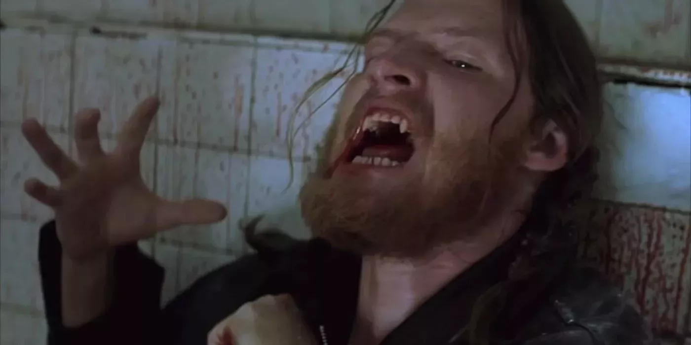 Aunque hoy en día puede recordar al público el inicio épicamente violento deBatman, la introducción de Blade en la película sigue siendo una de las mejores -y más habituales- escenas iniciales de una película de superhéroes hasta la fecha. A diferencia del héroe titular, el público es presentado por primera vez con un molesto estereotipo de chico fiestero y su cita escasamente vestida mientras recorren la ciudad. El hombre no tiene ni idea de adónde se dirigen hasta que llegan a una planta de envasado de carne abandonada y al club subterráneo que hay bajo ella. Blade se convierte rápidamente en una película de terror; mientras la cámara se cierne sobre el espacio abarrotado y sus duras luces estroboscópicas, empieza a llover sangre del techo.