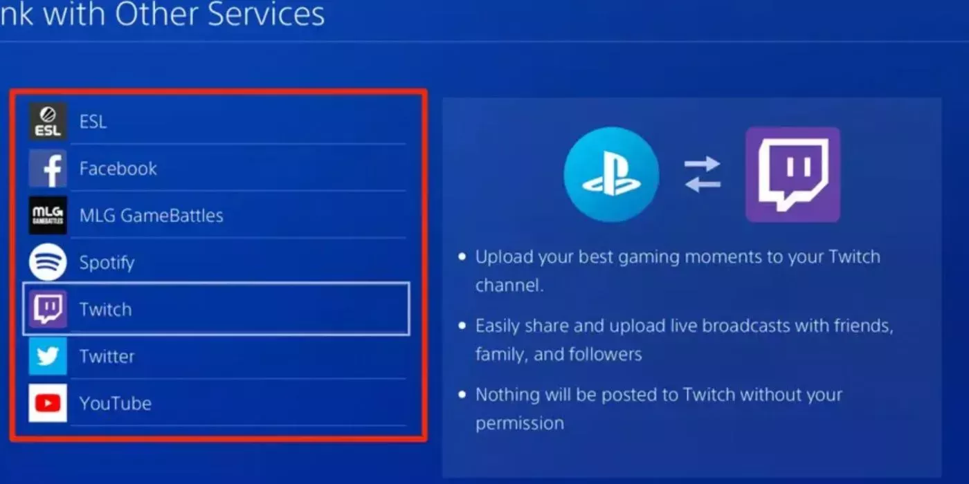 Antes de que los usuarios de PlayStation puedan empezar a retransmitir sus juegos de carreras favoritos o sus shooters en primera persona, deben crear una cuenta de retransmisión. Los jugadores deben crear una cuenta en una plataforma de streaming como Twitch y vincularla a PlayStation Network. El Soporte de PlayStation dice que esto se puede hacer haciendo clic en Configuración y luego navegando a la pestaña Usuarios y Cuentas.
