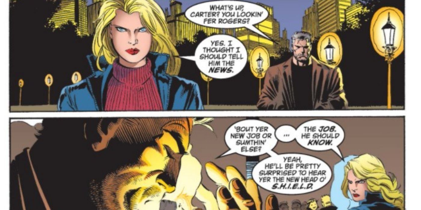 Su nuevo ascenso se anunció al final del número 31 de 2000 del Capitán América, escrito por Dan Jurgens y Andy Kubert. La mayor parte del número mostraba a ella y al Capitán América luchando en la Tierra Salvaje mientras Sharon actuaba con frialdad hacia Steve. Él le había confesado recientemente su amor, y a pesar de compartir aparentemente estos sentimientos, ella lo rechazó. Al final del número, parecían estar a punto de resolver sus diferencias y estaban a punto de besarse cuando Nick Fury apareció, interrumpiéndolos. De vuelta a Nueva York, confirmó que Sharon le sustituía como jefe de S.H.I.E.L.D. mientras él atendía algunos asuntos personales. Parece que este nuevo trabajo era la verdadera razón por la que Sharon se negaba a devolver el afecto a Steve.
