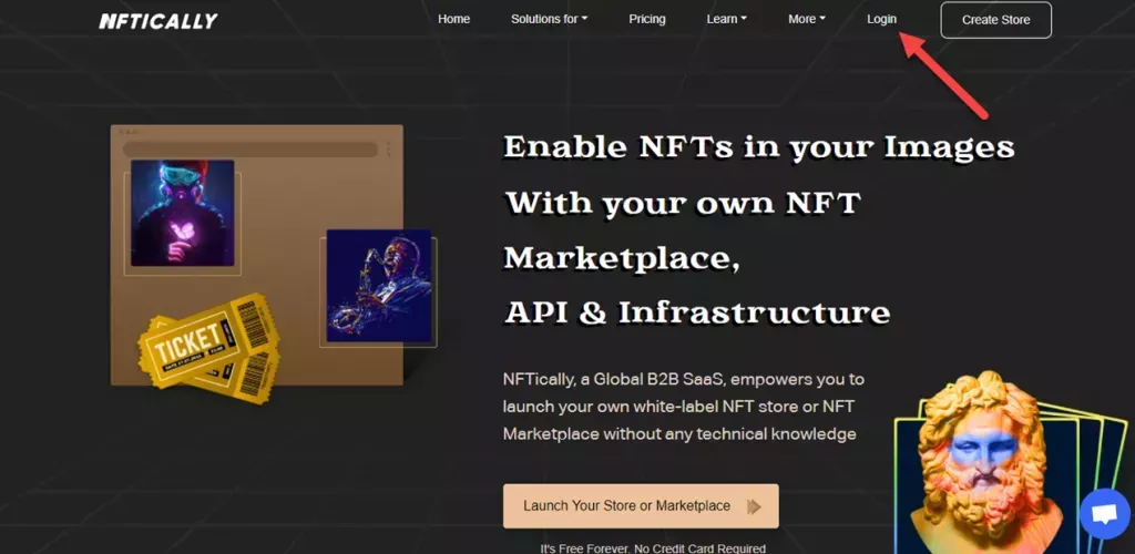 - Visite NFTICALLY y haga clic en la pestaña "Login", visible en la esquina superior derecha.