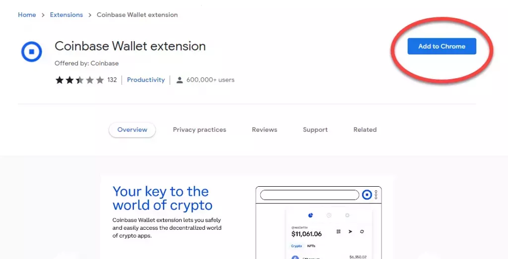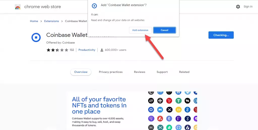 Para esta demostración, seguiremos adelante con la instalación de Coinbase como extensión del navegador.