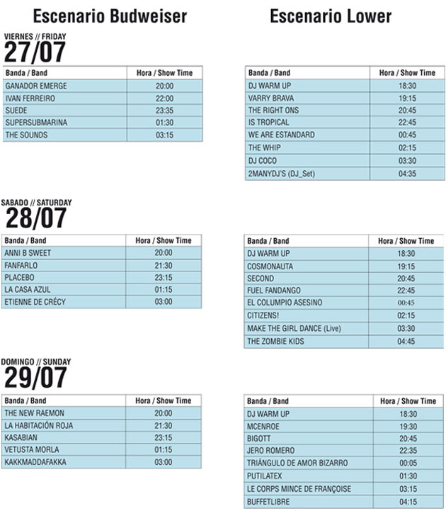 Estos son los horarios y la distribución por escenarios que nos ha llegado a través de la web oficial del festival: