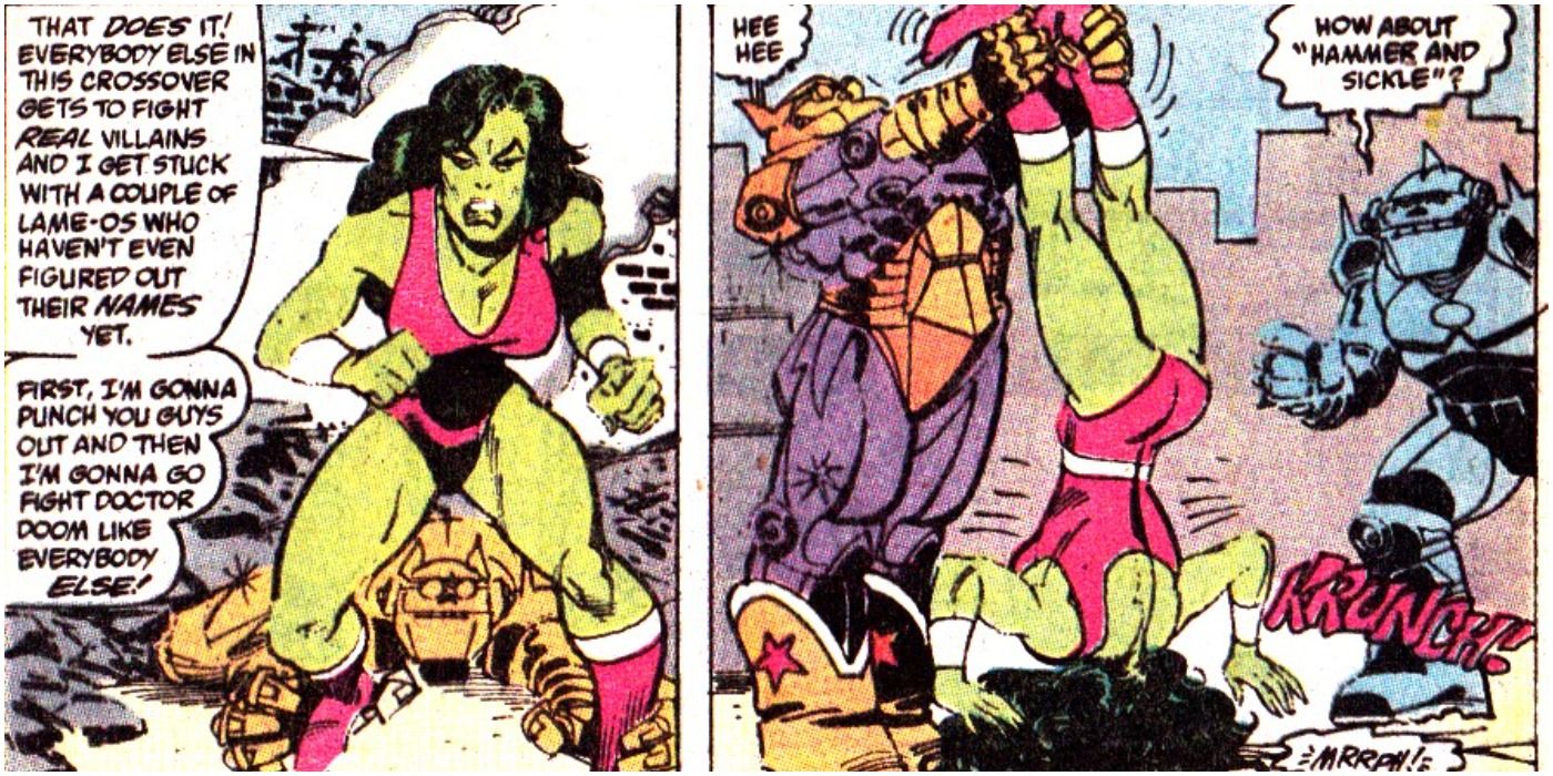 She-Hulk fue la elección perfecta para esta serie irreverente, ya que había sido pionera en un montón de meta-comentarios en su propia serie en solitario en ese momento, y en el curso de algunas de sus historias más esenciales a lo largo de los años.