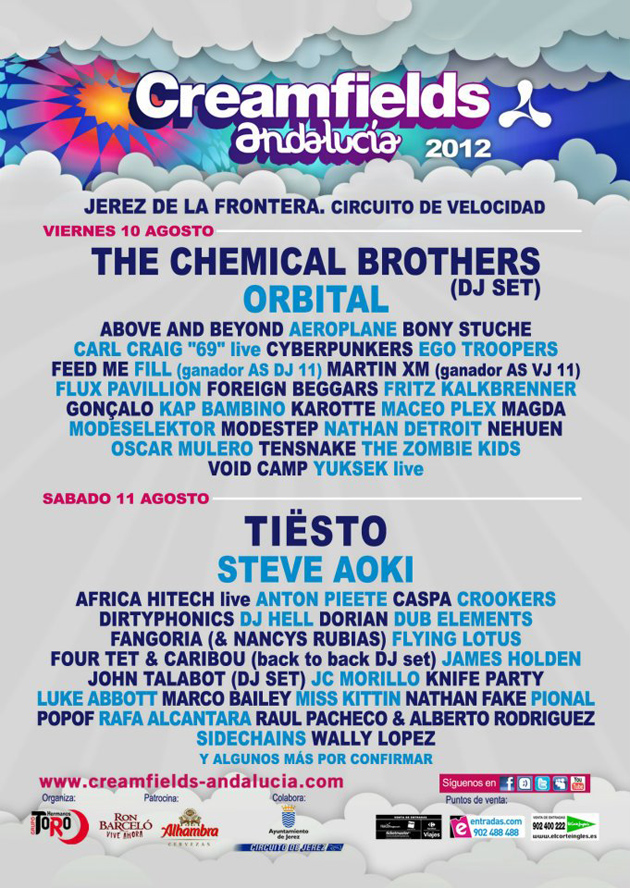 El festival Creamfields Andalucía, que se celebrará los días 10 y 11 de agosto de 2012 en Jerez de la Frontera, acaba de anunciar diecisiete nombres más para su cartel. Ninguno tocho, eso sí.