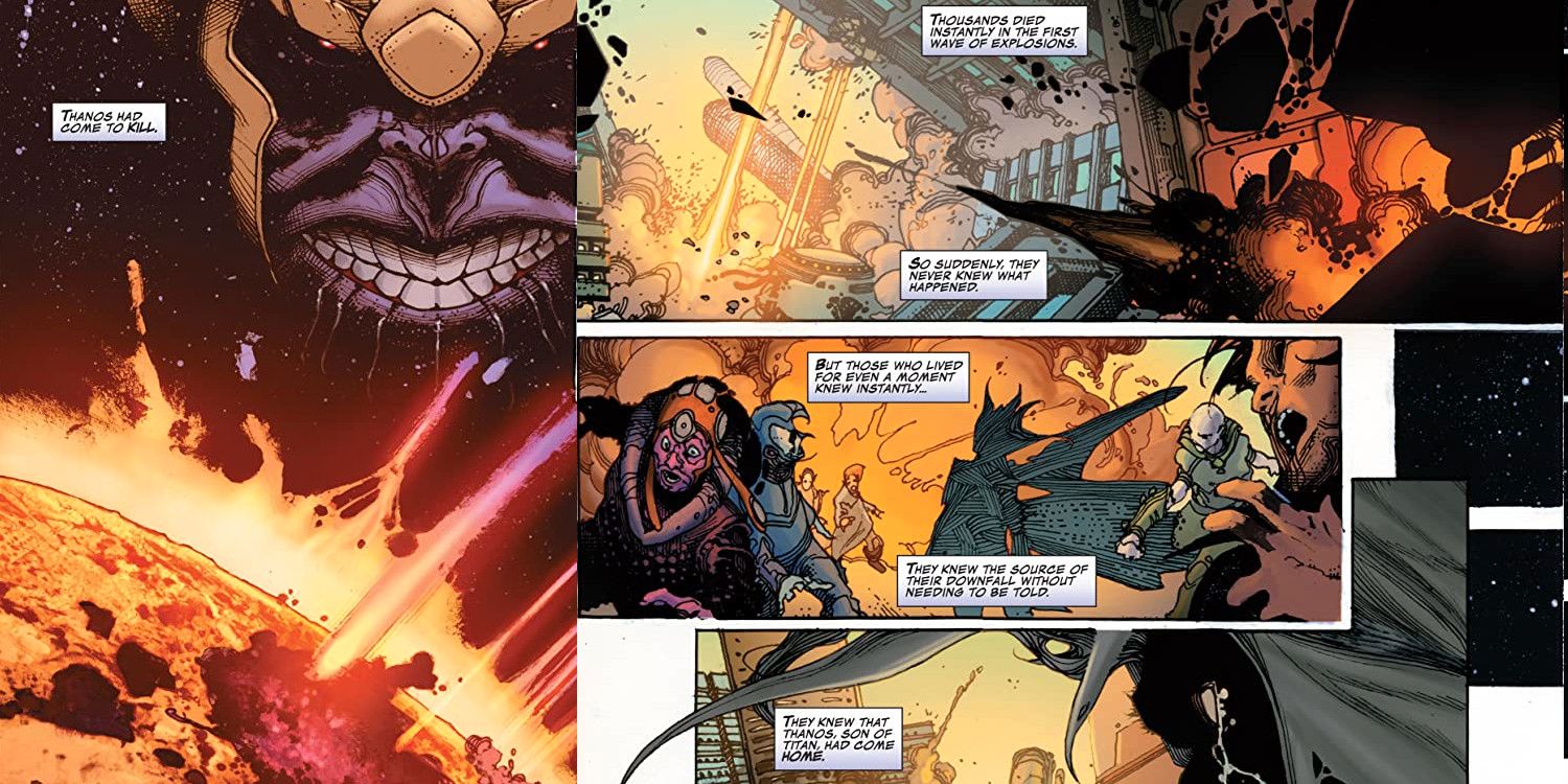 A través del Guantelete del Infinito, Thanos es responsable de un número incomprensible de vidas apagadas (y esto excluyendo sus saqueos y pillajes, una tendencia general con él.) En términos de personajes con nombre, ha asesinado a Nova y Star-Lord en el Cancerverso, además de ser asesinado él mismo, aunque la naturaleza de esa dimensión específica se niega a permitir que nadie muera.