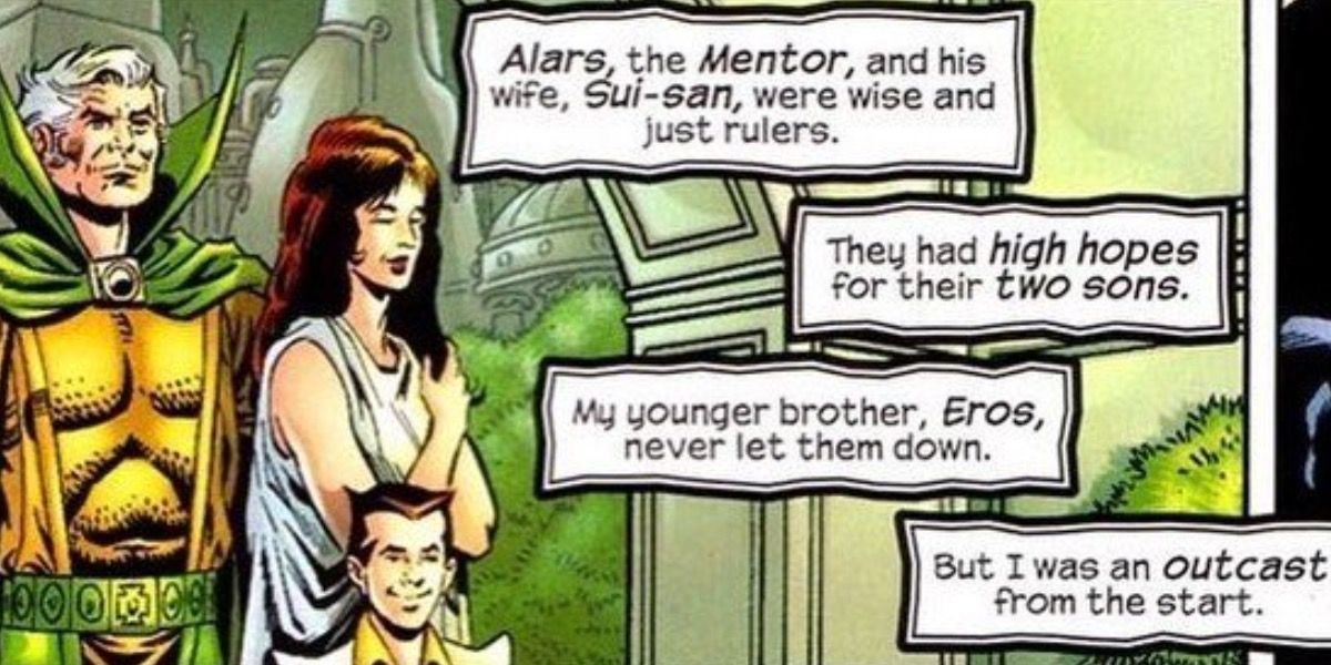 A'Lars y Sui-San tuvieron dos hijos, el menor de los cuales es Eron (más tarde rebautizado como Eros), que es totalmente diferente a Thanos en todos los aspectos posibles. Después de que su hermano muestre sus verdaderos colores, Eros se enfrenta a él en numerosas ocasiones hasta que decide romanizar el universo y perseguir sus esfuerzos "románticos".