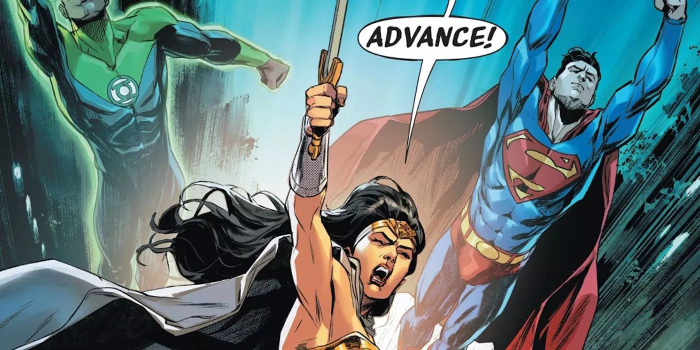 En la Liga de la Justicia #46, John exuda el liderazgo necesario para dar un paso atrás durante una batalla con las Amazonas. La Mujer Maravilla asume el papel de líder y demuestra que puede ser la mejor comandante de campo del equipo.