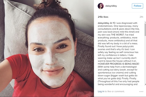 “Cuando tenía quince años fui diagnosticada de endometriosis. Una laparoscopia, muchas consultas y ocho años después, el dolor volvió (¡más suave esta vez!) y mi piel era LO PEOR. He intentado todo: productos, antibióticos, más productos, más antibióticos, … y el resulta fue que mi cuerpo quedó hecho un desastre. Al final, he sabido que sufro de ovarios poliquísticos y eso es lo que está mal.