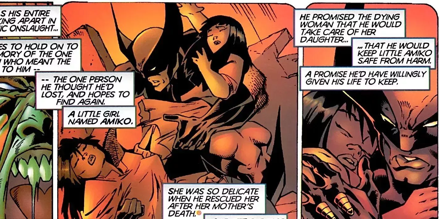 Aunque no es mutante ni pariente de sangre de Lobezno, Amiko Kobayashi ocupa un lugar muy querido en el corazón de Lobezno. Todo empezó tras los sucesos de Secret Wars, cuando los X-Men regresaron a la Tierra y se encontraron en Tokio. Por desgracia, el dragón mascota de Kitty Pryde también les siguió y no se adaptó bien a su nuevo hogar, prendiendo fuego a toda la ciudad. El fuego acabó con la vida de una joven y, con su último aliento, suplicó a Lobezno que cuidara de su hija.