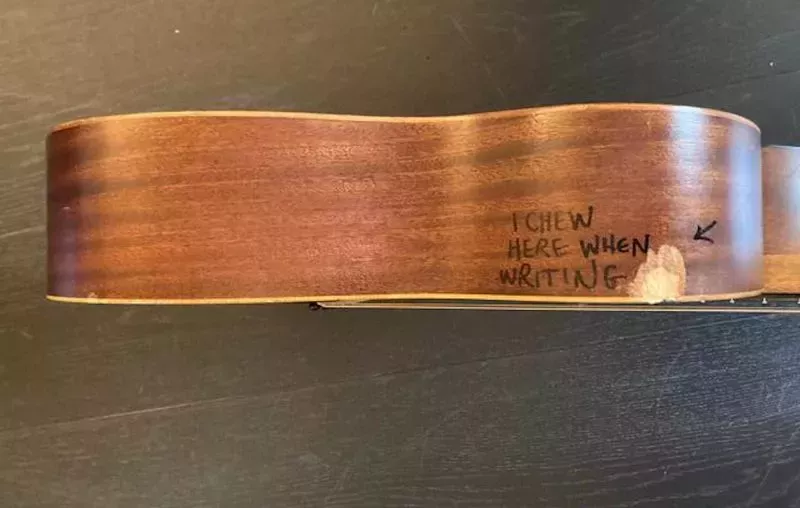 Hablando del artículo, Albarn dijo: "No está en las mejores condiciones, pero muy bien utilizado para escribir en los últimos diez años, genuina guitarra de trabajo, con amor Damon Albarn 2022 x".