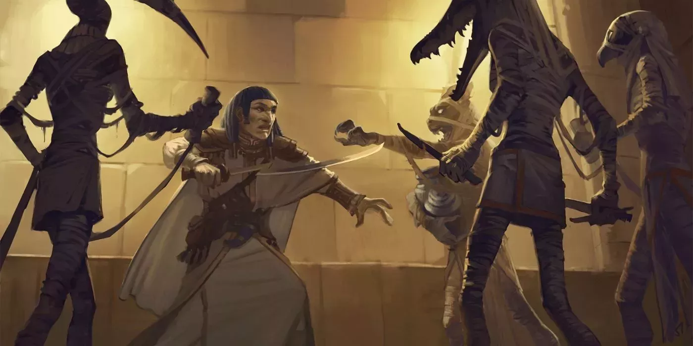Este escenario es increíblemente versátil. Aunque Har'Akir está diseñado para la fantasía oscura, los brutales rituales de momificación pueden incorporar el horror corporal, mientras que el duro desierto con escasez de agua es ideal para el horror de supervivencia. Además, las criptas llenas de tesoros, los dioses olvidados y los secretos perdidos bajo las arenas hacen que Har'Akir sea ideal para aventuras de espada y brujería o incluso para una campaña de fantasía heroica.