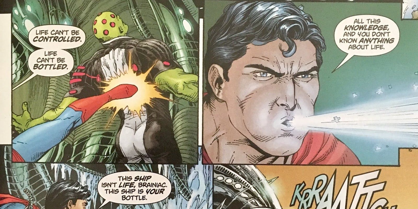 Toda la ofensiva de Batman dependía de que tuviera algún tipo de pie seguro, y Superman podría haber acabado con eso con poderosas ráfagas de superrespiración. Golpear a alguien, incluso a alguien blindado, con ráfagas de aire que se movían a cientos de kilómetros por hora destrozaría el día de cualquiera y le habría permitido vencer a Batman.
