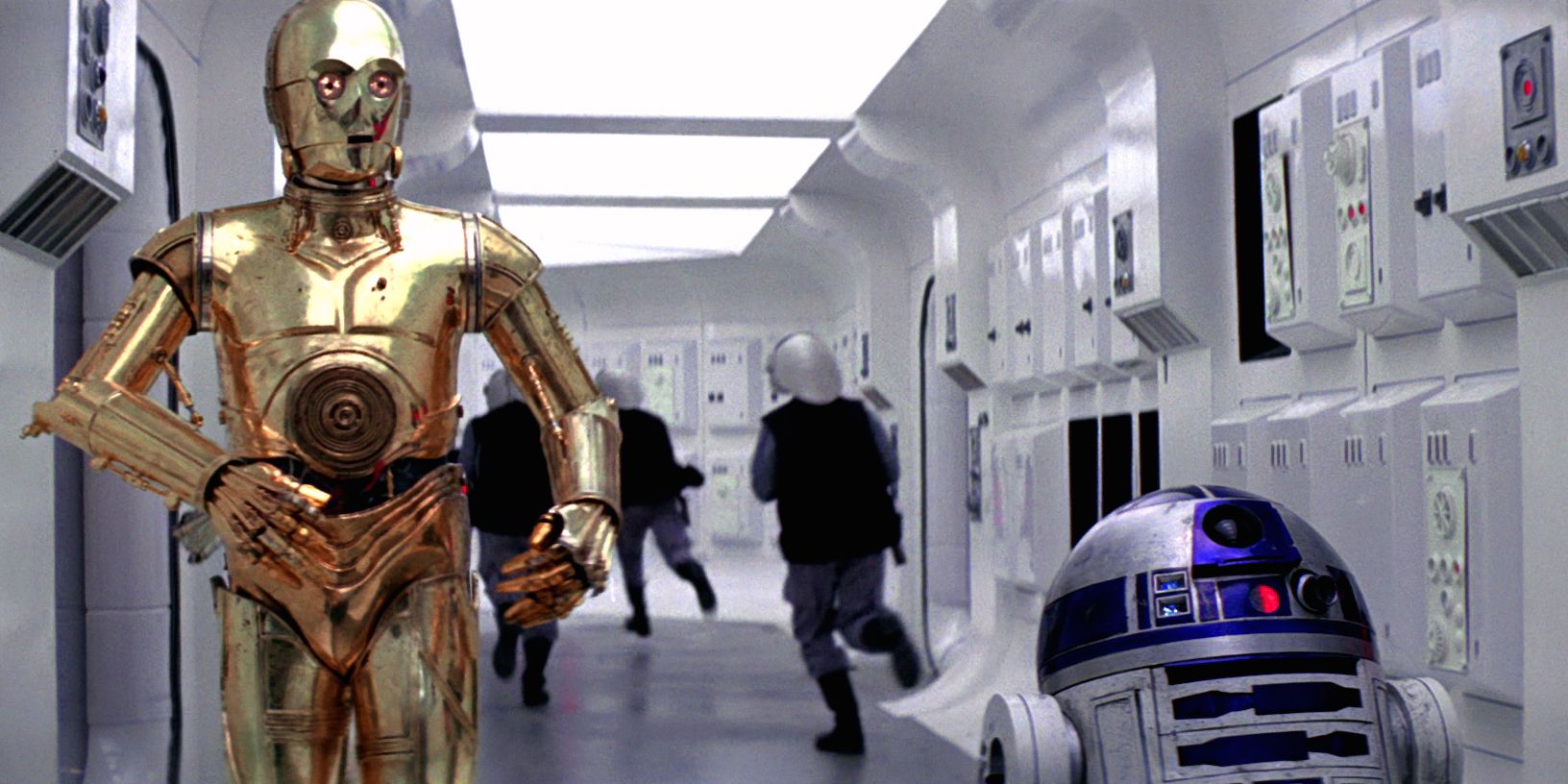 La icónica apertura de "A New Hope" ve al Tantive IV siendo perseguido por el Devastador. La nave queda empequeñecida en tamaño durante la persecución.