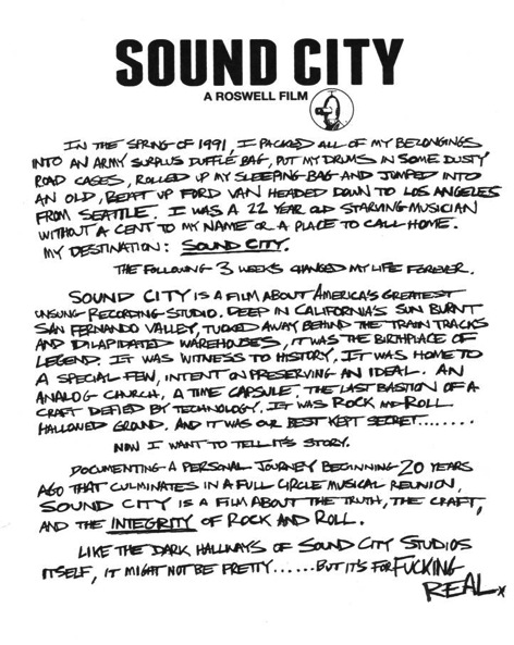 Según leemos en Antiquiet, Grohl tuvo la idea tras comprar la consola 'Neve 8028' de los estudios tras su cierre. Además, Butch Vig, productor del 'Nevermind' y componente de Garbage, comentó a Billboard que probablemente la película se estrene a principios de 2013: "Espero que la tengamos finalizada y mezclada en otoño... para hacer que salga a principios del año que viene, como en enero o febrero". Ojalá sea así.