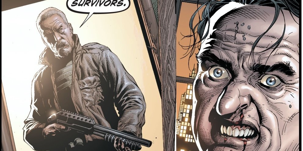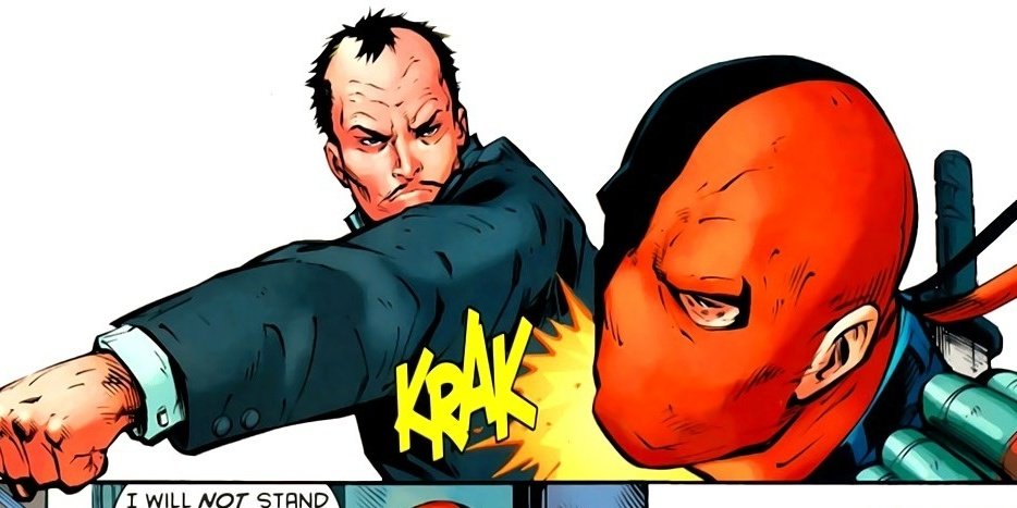 Deathstroke había disparado a dos hombres que luego aterrizaron en el coche de Alfred. Para empeorar las cosas, Deathstroke procede a insultar a Alfred antes de apuñalar a una de las víctimas. En este punto, Alfred está muy enfadado, así que le da una buena paliza a Deathstroke dándole un puñetazo en la cara.