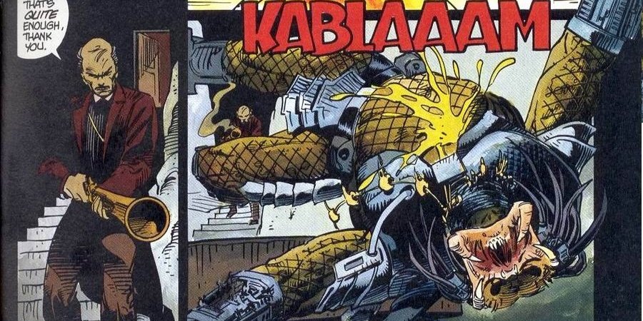 Durante la revancha entre Batman y Predator, Alfred, canalizando su Schwarzenegger interior, valientemente entró con un trabuco y disparó al Predator a quemarropa en el pecho. No fue suficiente matar a Predator, pero Alfred merece crédito por su salvajismo.