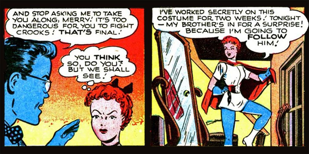 Una nueva Merry, Girl of 1000 Gimmicks sólo necesita usar el nombre. Los lazos familiares no tienen por qué existir; hay suficientes personajes de legado que lo demuestran. Mejorar su parafernalia es muy concebible, especialmente con la prevalencia de la electrónica en comparación con la Edad de Oro.