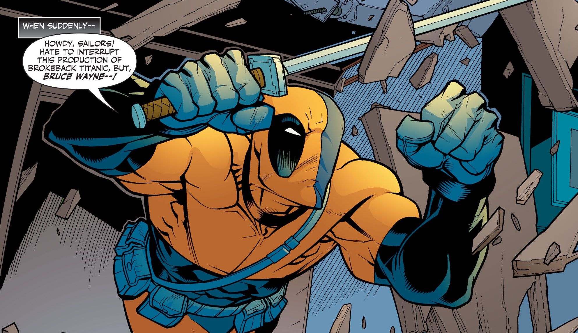 8 La contraparte sin nombre de Deathstroke en el universo del Sindicato del Crimen es esencialmente Deadpool