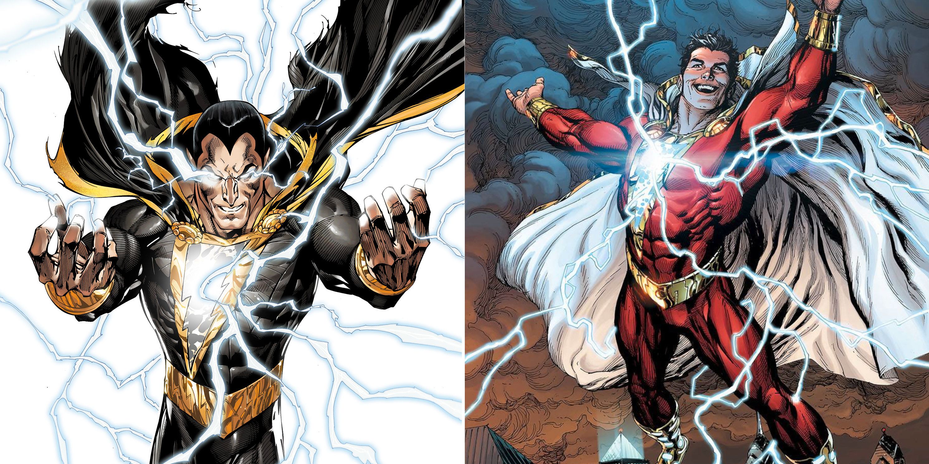 Shazam es el tipo bueno por excelencia, ya que ha sido miembro de la Liga de la Justicia y de la Sociedad de la Justicia, y utiliza sus poderes para ayudar a los necesitados. Black Adam, por su parte, luchó contra Shazam durante años antes de convertirse en un antihéroe que no tenía problemas para matar. Ambos son muy poderosos, con energía mágica que les otorga sus poderes.