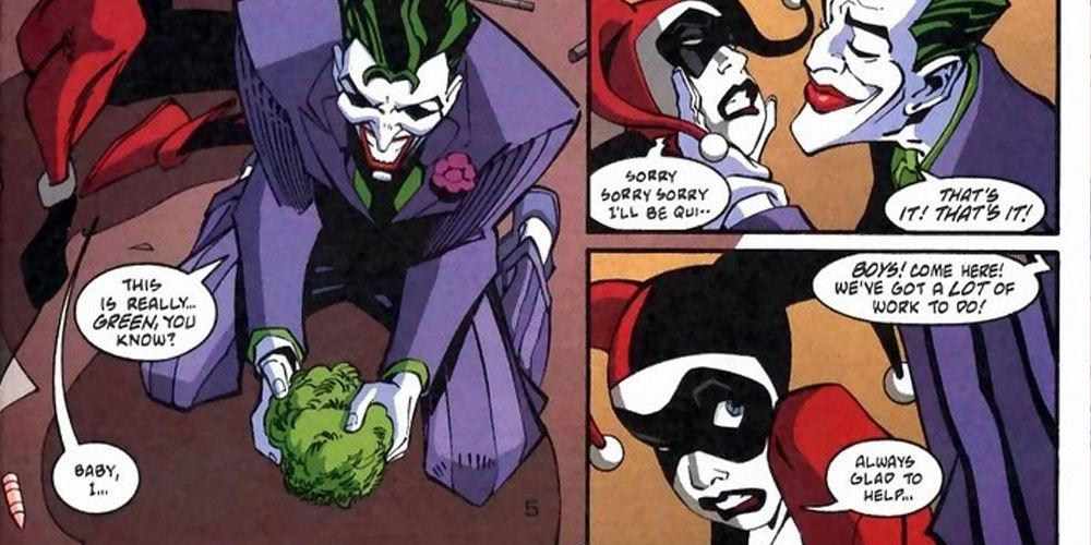 Manipulándola hasta el extremo de su propio entretenimiento, el Joker hace que Harley se cuestione no sólo sus circunstancias, sino que se culpe incluso a sí misma en este ciclo perpetuo de amor y quema. Por suerte, en los últimos años se ha abandonado este tropo de sumisión, ya que Harley se ha vuelto segura de sí misma y se ha desvinculado del Joker.
