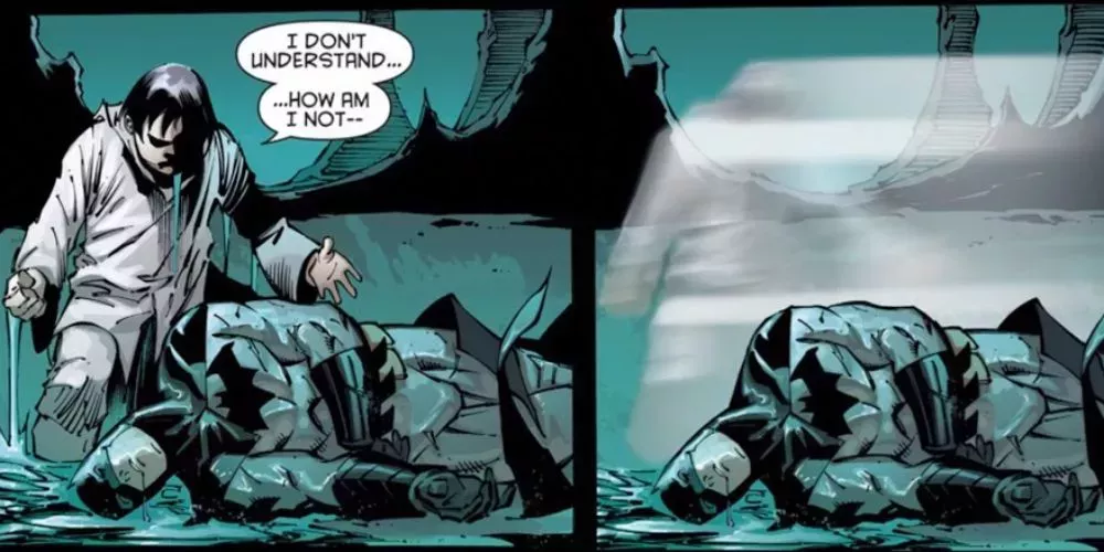 Cuando Grant Morrison mató a Damian Wayne al final de su carrera en Batman, Bruce fue incapaz de aceptar la pérdida. El ataúd de Damian habÃa sido implantado con una Esquirla del Caos que originalmente pertenecÃa a Darkseid, y Bruce logró burlar a Darkseid y utilizar su poder para cargar la Esquirla del Caos y devolver a su hijo a la vida.