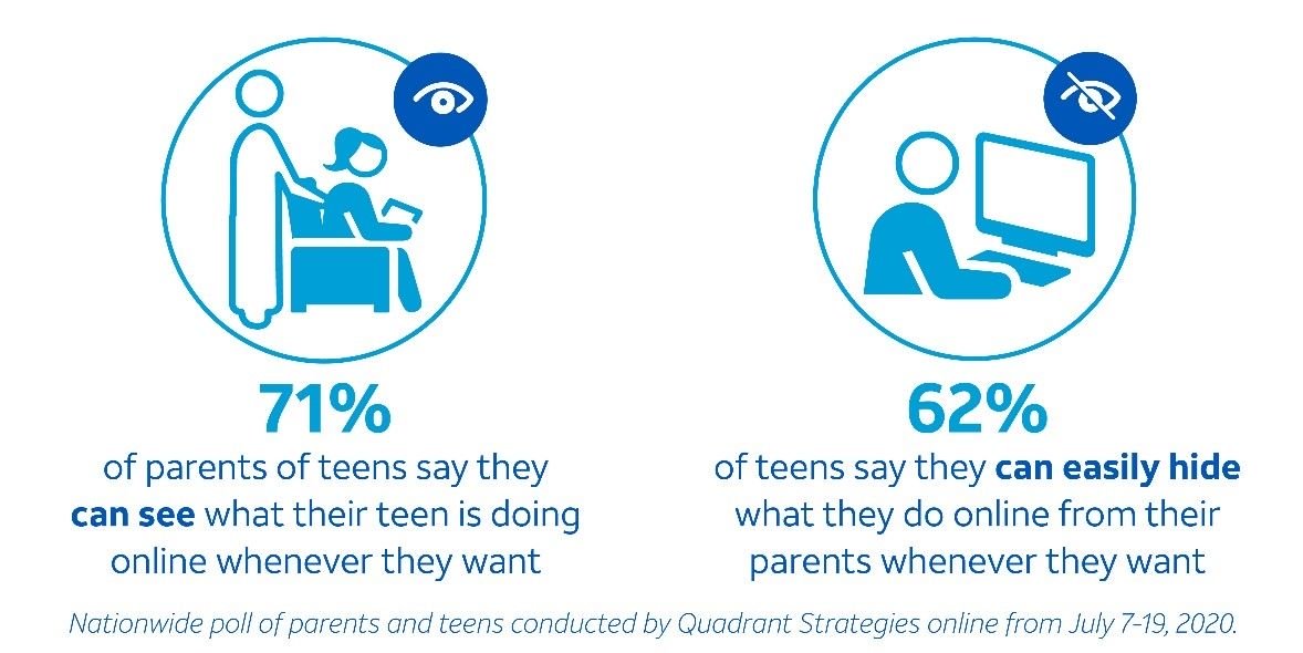 Mientras que el cierre de escuelas y el aumento del trabajo a distancia acercan a muchos adolescentes y padres, los adolescentes siguen informando que ocultan conductas riesgosas en línea, dejando a los padres fuera del circuito. Y esto sucede en un momento en que los adolescentes pasan más tiempo en línea y los padres están cada vez más preocupados por el tiempo que pasan frente a la pantalla y la seguridad en línea.