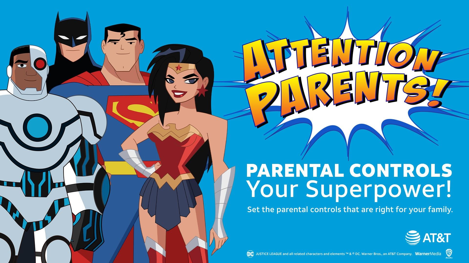 DC y la compañía matriz AT&T están reclutando a Batman, Superman, Wonder Woman y más para animar a los padres a ser héroes para sus hijos estableciendo controles paternales adecuados.