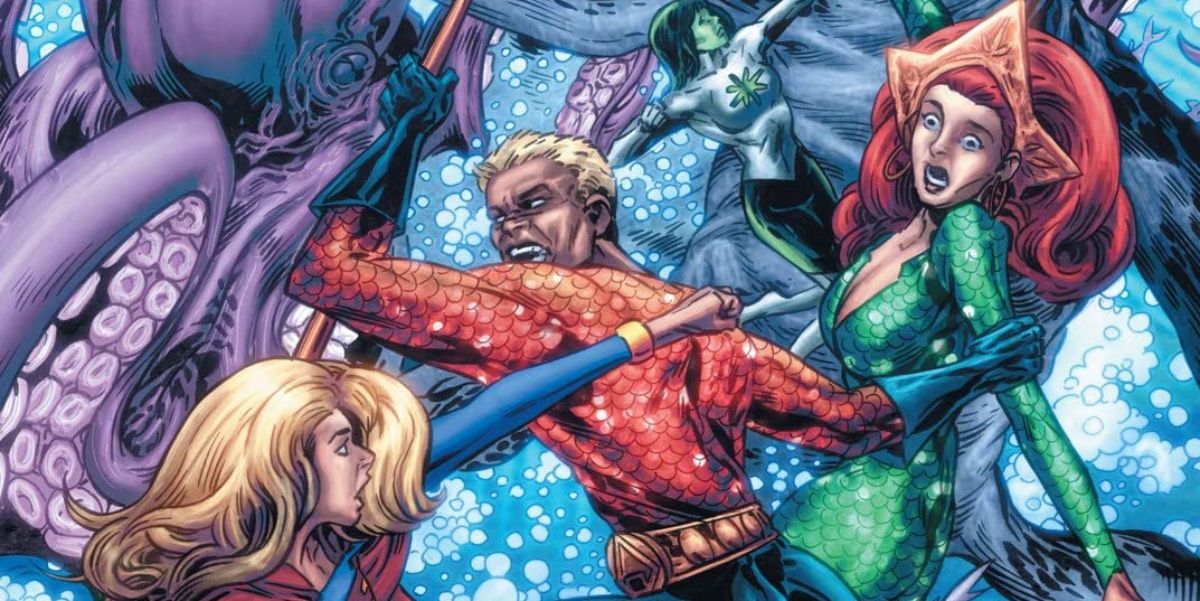 La historia de Aquaman antes de la Hora Cero en este enlace es intrigante debido a las luchas que ha soportado durante todo el año bajo la cúpula y su aparentemente condenada lucha contra el Golpe de Muerte del Universo de Wildstorm.