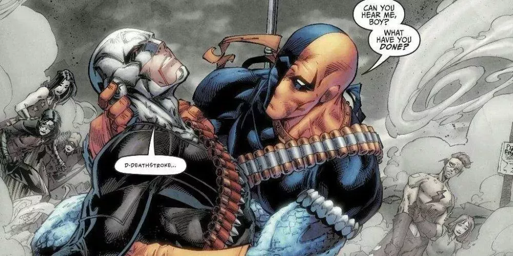 Deathstroke, naturalmente, acaba escapando. Sin embargo, Flecha Roja (Emiko Queen) decide poner fin a todo esto de forma definitiva y atraviesa la cabeza de Slade con una flecha. Por supuesto, más tarde se revela que esta muerte no es permanente.
