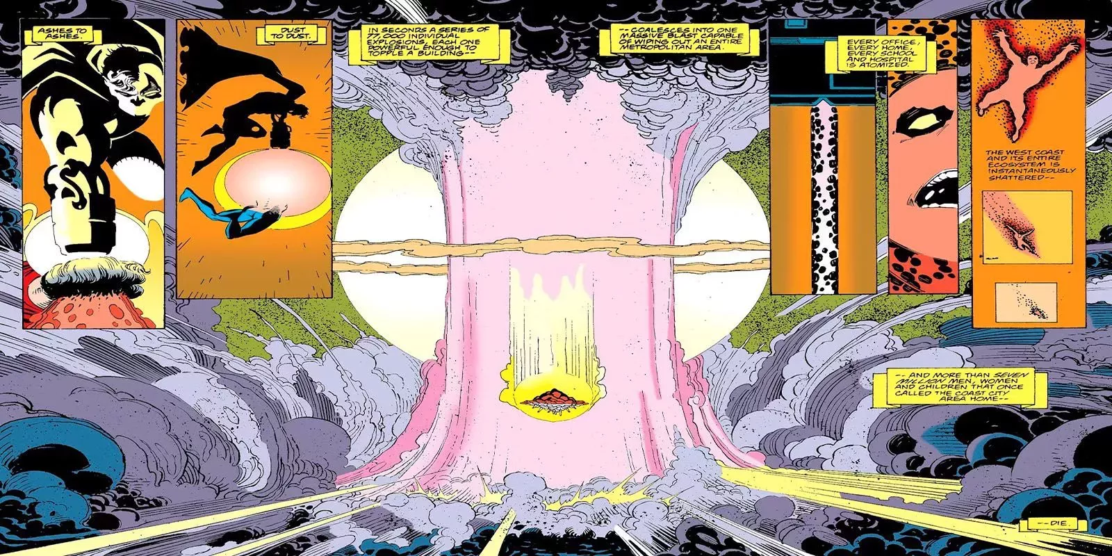 La muerte de Supermanes un clásico. Superman luchó contra Doomsday para salvar Metrópolis y ambos murieron. Fue un momento monumental, y aunque Superman murió sin remordimientos, llegaría a percibir su muerte como uno de sus mayores fracasos. Esto llevó a Hank Henshaw a convertirse en el Cyborg Superman, engañando a todo el mundo, y luego a destruir Coast City.